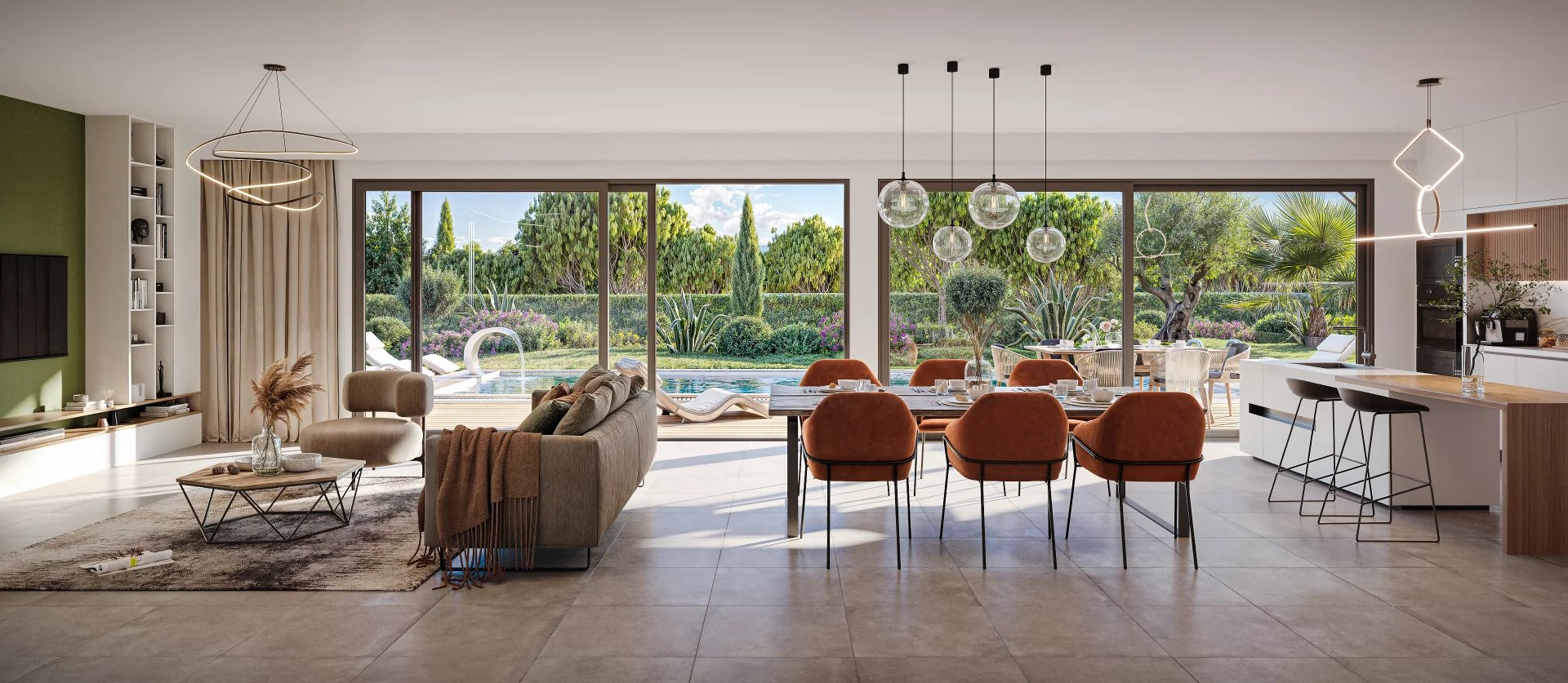 L’ensemble donnant sur terrasses côté piscine.
